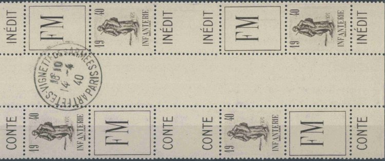FRANCE - Franchise Militaire "Infantérie", 4 paires interpanneaux