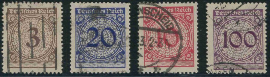GERMANY ex Mi. 338-43 O - 4 stamps with variety "broken basket"