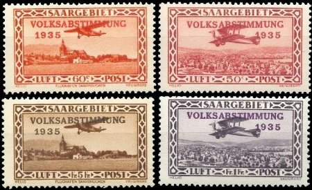 SARRE Yv. PA 5-8 * - Poste aérienne : Propagande pour le Plébiscite, surcharge 'Volksabstimmung 1935' - Série complète de 4 timbres