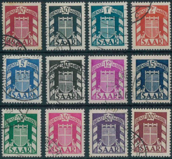 SARRE Sc. O27-38 FU - Official stamps : Arms of the Saar - Set of 12 stamps