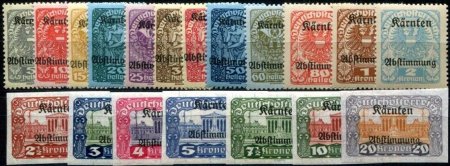 AUSTRIA 1920 : Carinthia Plebiscite - Set of 19 hinged stamps