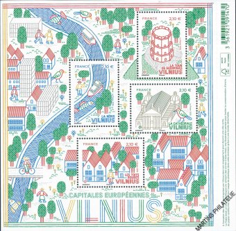 2025 : Capitales Européenes : Vilnius- Série de 4 timbres complète en mini-feuillet