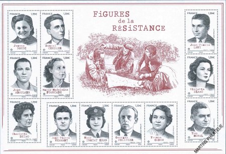 2025 : Figures de la Résistance - Feuillet avec 12 timbres