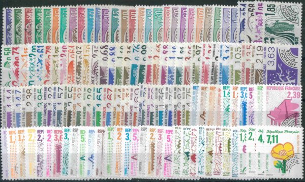 PRECANCELLED 1960-2000 : complete set of 125 stamps, Yv. No. 119 - 243
