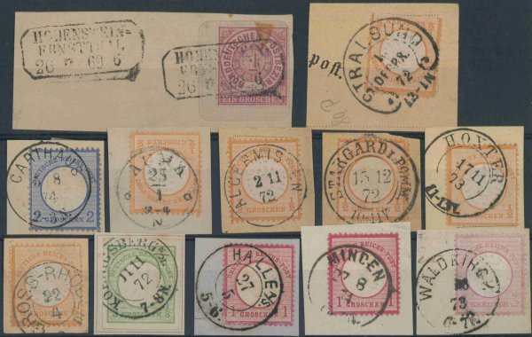GERMANY Embossed Eagle; 12 ex. on piece with selected cancellations
