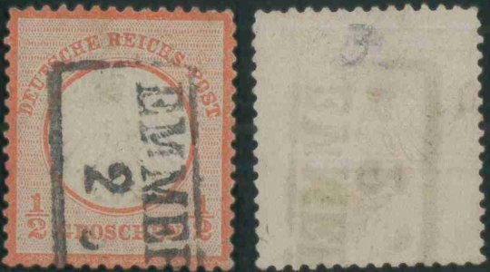 GERMANY Sc.No. 3 : Embossed Eagle with small shield - 1/2 Gr. orange-vermilion