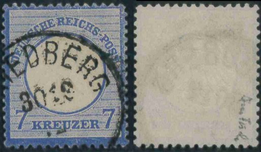 DT. REICH Mi.Nr. 10 : Reichsadler mit kleinem Brustschild - 7 Kreuzer blau